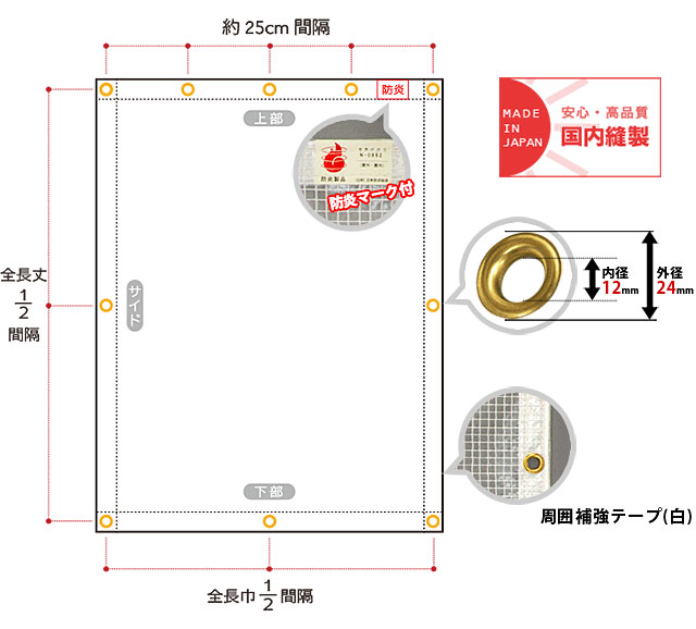 商品詳細 商品名 ■【既製サイズ】【FT09】 屋外使用に最適!糸入りで強度抜群 紫外線劣化しにくい ポリプロピレン(PP)製 防炎・難燃性ビニールカーテン(0.23mm厚) 幅200cm×丈250cm 厚み 0.23mm (糸部0.35mm) 材質 PP(ポリプロピレン製) 重量 240g/m2 概要 ●サイズ:幅200cm×丈250cm ●ハトメの数:上部9個 ●四方補強テープ 周囲ハトメ約300ピッチ ●既製品のため、サイズの変更・ハトメの数の変更・オプションの追加は出来ません。 ●営業日の正午までにクレジットカード決済・代引きでのご注文に限り即日出荷が可能です。 ●返品・交換・キャンセルのできない商品です。 ※ご注文の前に当店のご注文規定を必ずご確認ください。ご注文の際は、こちらのページの内容をご理解いただいたものと判断させていただきます。 関連キーワード ビニールシート ビニール カーテン 透明 間切り 温室 雨よけ風よけ 防寒 断熱シート 断熱カーテン 花粉よけ 省エネ ビニールカーテン 透明ビニールカーテン ビニール カーテン 工場用ビニールカーテン ビニール 温室 ベランダ 雨よけ 業務用ビニールカーテン ビニールシート ビニールカーテン 既製品 雨 シート 業務用 ビニールカーテン 業務用カーテン ビニールカーテン 透明 業務用 虫除けビニールカーテン 透明シート 店舗用ビニールカーテン ビニール カーテン 断熱 断熱カーテン 雨よけ カーテン 間仕切り ビニール 防炎 ビニール 間仕切 ビニールカーテン レール 断熱カーテン 透明 断熱シート 防寒 カーテン ビニール 雨よけ F-3500 PVC PO糸入り PO糸入防炎難燃UV のれん式シート 洗濯 花粉よけ 養生シート 防炎透明カーテン オプトロン ビニール カーテン 透明 雨風よけシート ビニールカーテン既製品 工場用カーテン 店舗 ビニールカーテン 既製品■【FT09】 屋外使用に最適!糸入りで強度抜群 紫外線劣化しにくい ポリプロピレン(PP)製 防炎・難燃性ビニールカーテン(0.23mm厚) 【既製サイズ】幅200cm×丈250cm ポリプロピレン製のシート「FT09」は硬化が少ないので屋外での使用、寒冷地での使用におすすめです。 PVC(塩ビ)製のビニールカーテンに比べてハリがありしっかりした素材で、汚れが付着しにくく、劣化しにくいのが特徴です。 冬の寒さが厳しい北国など、寒冷地では硬化のしにくいビニールカーテンが大活躍!倉庫や店舗の入り口、大型冷蔵室の間仕切りにもおすすめの防風、防雪、防寒に使えるビニールカーテンです。 大型のカーテンレールで取付けたり、直接貼り付けたり、ビニールカバーにしたりと使い方はさまざま。また、犬小屋やインコやニワトリなどの鳥小屋など、かわいい動物たちの寒さ対策にも活躍しています。 シートの透け感 標準仕様 FT09 防炎実験 防炎ビニールカーテンFT09が実際どのように燃えるか実験をしてみました。 実際、燃え広がらず溶けて穴が開くという状態でした。防炎機能は炎上を防ぎ、火災になるのを抑制します。 商品詳細 商品詳細 商品名 【FT09】ポリプロピレン(PP)製防炎・難燃性ビニールカーテン0.23mm厚 既製サイズ サイズ 幅200cm×丈250cm 素材 ポリプロピレン(PP) 納期 即日出荷 概要 日本製 使用上の注意 ビニールをピンと張って固定すると破れの原因になります。 ハリのあるビニールです。開閉の際に布カーテンのようなやわらかいドレープにはなりません。 摘要 既製品のため、サイズの変更・ハトメの数の変更・オプションの追加は出来ません 注)ビニール製の為、仕上りサイズから1〜2%の誤差がでる場合があります。ご了承ください。 サイズ:幅200cm×丈250cm ハトメの数:上部9個 四方補強テープ 周囲ハトメ約300ピッチ 営業日の正午までにクレジットカード決済・代引きでのご注文に限り即日出荷が可能です。 返品・交換・キャンセルのできない商品です。 ご注文の前に当店のご注文規定を必ずご確認ください。ご注文の際は、こちらのページの内容をご理解いただいたものと判断させていただきます。
