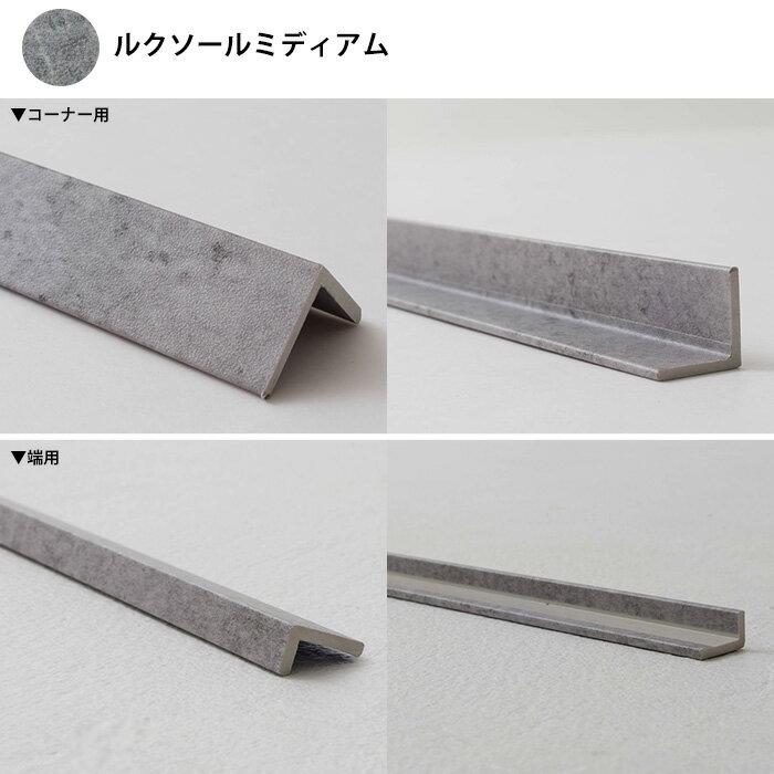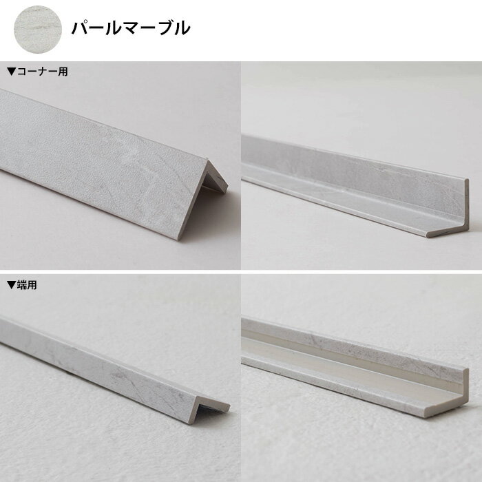 商品名 カラーズウォールデコシリーズ ウォールデコッシュプロ見切り材 1本 種類 端用、コーナー用 サイズ 端用 ・[大]8×15×2500mm ・[小]8×15×1230mm コーナー用 ・[大]20×20×2500mm ・[小]20×20×1230mm 厚み 端用:2.3mm コーナー用:2.5mm 重さ 端用 ・[大]約225g ・[小]約110g コーナー用 ・[大]約265g ・[小]約130g 材質 本体:SPC 表面:PVCフィルム カラー ルクソールミディアム、パールマーブル 使用方法 ▼端用 L字型の端用見切り材です。施工面の端に使用します。 ウォールデコッシュの側面や切り口を隠し、仕上げを綺麗に見せることができます。 [施工の種類] ・被せ L字の長辺をウォールデコッシュ表面に被せます。 ・中入れ ウォールデコッシュの裏の接着シート層を切り取り、L字の長辺を裏側に仕込みます。 ウォールデコッシュの表面と高さが揃い、フラットに仕上げることができます。 ▼コーナー用 同じ長さの辺の角用見切り材です。部屋の角や柱の出っ張りに使用します。 ウォールデコッシュの側面や切り口を隠し、仕上げを綺麗に見せることができます。 [施工の種類] ・出隅 柱や梁などの出っ張った角のことです。折り目でいうと山折りにあたる部分です。ウォールデコッシュの切り口が特に目立つ部分ですのでご使用をおすすめします。 ・入隅 部屋の壁同士が接する角や、壁と天井の境目の部分のことです。折り目でいうと谷折りにあたる部分です。長さが揃わなかった部分や切り口などを隠すことができます。 取り付け手順 1:必要なサイズを測り、カッターや金ノコでカットする。 2:シリコンボンドで取付る。 ※水廻りに施工して完全防水にする場合はコーキングで仕上げる。 商品の注意事項 ※「ウォールデコッシュプロ」専用の見切り材です。「ウォールデコッシュ」には使用できません。ご注意ください。 ・1本1本、模様や色味は異なります。ご指定はできませんので予めご了承下さい。 ・当製品は屋内でご使用ください。 ・250cmでご購入の際は設置場所だけでなく、玄関、廊下、階段、エレベーターなど搬入経路の幅と高さを事前にご確認ください。 ・カットする際はカッターや切り口での怪我防止のため、作業手袋の着用をおすすめします。 ご注意 ・平日午後12時までに、商品代引またはクレジットカード決済でのお支払の場合、最短即日出荷が可能です。(欠品や品薄など在庫状況により別途納期が掛かる場合がございます。予めご了承お願い致します。) ・開封後のお客様のご都合によります、返品・交換には対応いたしておりません。 ・出荷後の住所・送付先の変更は転送料が必要となりますので、ご注文前にお届け先住所を必ずご確認ください。 ・即日出荷の商品と、それ以外の商品を同時にご購入された場合は、納期の遅い方に合わせての出荷になります。即納商品を先にお受け取りになりたい場合は、備考欄にお書き添えください。 ・ご注文の前に当店のご注文規定を必ずご確認ください。ご注文の際は、こちらのページの内容をご理解いただいたものと判断させていただきます。 バスパネル パネル浴室 タイル 壁 壁用 お風呂 風呂 お風呂場 トイレ 水廻り キッチン 洗面所 DIY 貼り付け 貼り替え 張替え リフォーム タイル壁 直接 貼れる カッターナイフで施工可能 変身 初めての方 セルフリフォーム リノベ リノベーション セルフ アルパレージ バスリブ 簡単 シールタイプ 浴室パネル バスパネル ニッチ 壁の補修 水まわり 水周り 木目タイル 石目タイル 木目 石目 DIY 見切り材 綺麗に見せる水回りに使える簡単施工の防水パネル「WALL DECOSH PROウォールデコッシュプロ」専用の見切り材です。端用、コーナー用の2種類に長さが2サイズとなります。ご使用の種類・長さをご購入ください。※「ウォールデコッシュプロ」専用の見切り材です。「ウォールデコッシュ」には使用できません。ご注意ください。 COLOR VARIATIONカラーバリエーション SIZE&DETAILサイズ&詳細 Construction example施工例