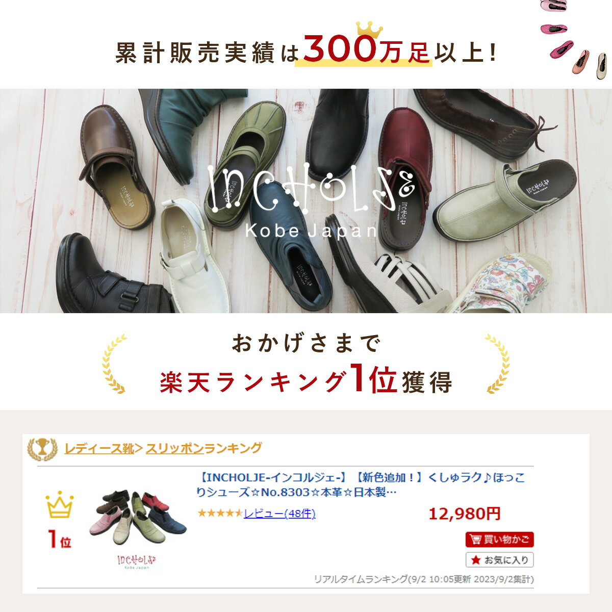 【5と0が付く日はポイント2倍】INCHOLJE-インコルジェ 8303 本革 日本製 コンフォート シューズ 柔らか ウォーキング おしゃれ 靴 革 レディース 幅広 甲高 軽量 疲れにくい 歩きやすい 履きやすい 外反母趾 痛くない 走れる 旅行 シンプル おすすめ 優しい 40代 50代 60代