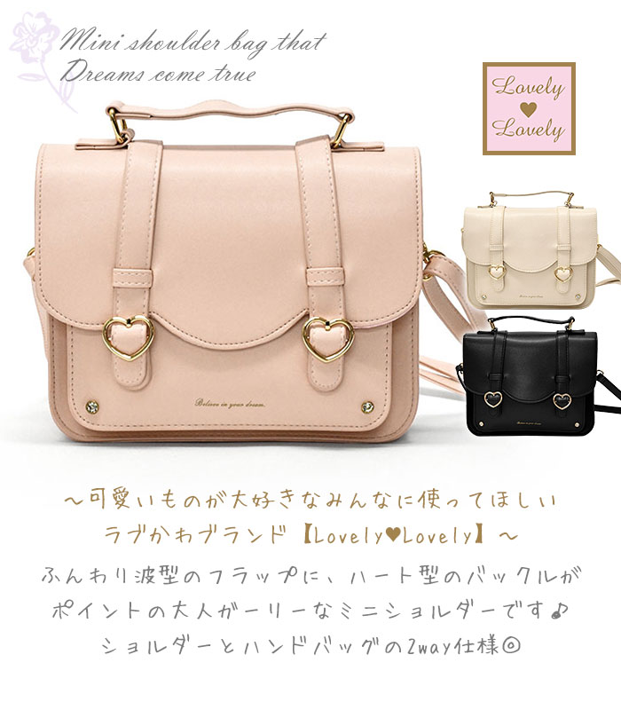 ■ ふんわり波型のフラップに、ハート型のバックルがポイントの大人ガーリーなミニサッチェルバッグです。 ■ ショルダーバッグ・ハンドバッグとして使える2way仕様! ■ 小柄ながらも、スマホや財布などお出かけの必需品がしっかり収納できます◎ ■ サイズ・・・たて約18cm×よこ約22cm×まち約6cm ※多少の誤差はご了承ください ■ PCモニターの画質や環境により、写真と実物の色味が多少異なる場合がございますのでご了承ください。 ※ 当商品は送料無料となりますが、大変申し訳ありませんが沖縄県は別途1600円かかります。システムの都合上、ご注文時の送料は自動計算のため0円表示となりますが、後ほど1600円を加算した合計金額をご案内させて頂きますので、ご了承くださいますようお願い致します。(離島地域も別途送料が加算されます。加算送料は商品の大きさや地域により異なりますので、注文確定後に加算送料のご連絡を行わせていただき、お客様のご了承後の発送となります。何卒宜しくお願いいたします。)
