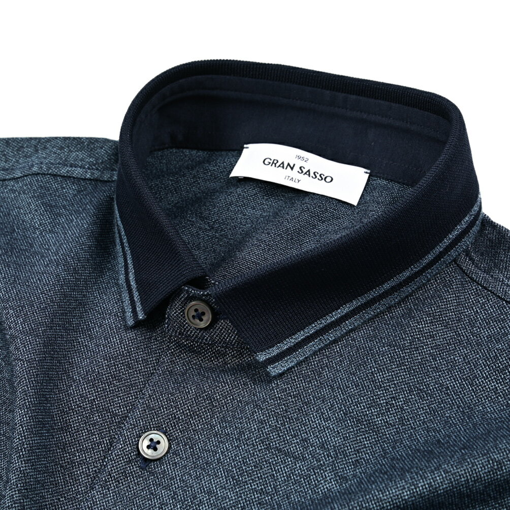 【新春初売り】【半額以下】 グランサッソ GRAN SASSO 鹿の子ポロシャツ 半袖 春夏 メンズ コットン100% ナチュラルストレッチ カノコ ピケ 台襟ポロ ネイビー イタリア ブランド MADE IN ITALY