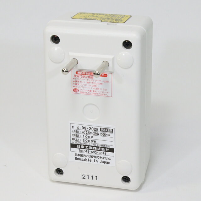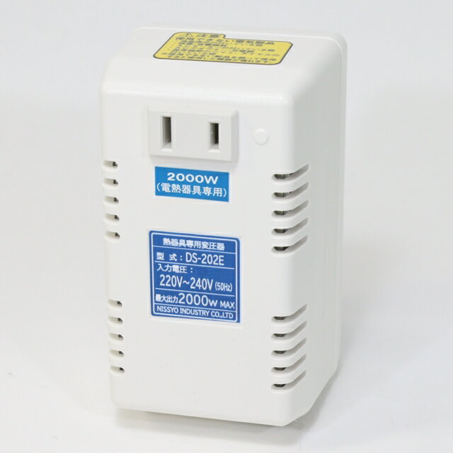 【電子式変圧器】【熱器具専用】【220V~240V/50Hz対応】 日章工業 電子式トラベルコンバーター 定格容量2000W DS-202E