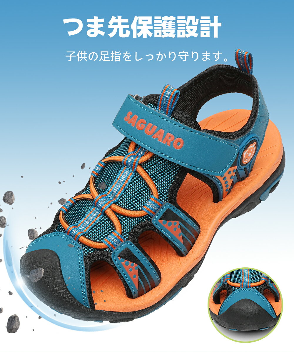 【SAGUARO】あす楽 送料無料 サンダル ビーチサンダル キッズ シューズ 子供 つま先保護 マジックテープ アウトドア スポーツ 男の子 女の子 スポーツサンダル アウトドアシューズ ウォーター シューズ 通気 滑り止め 軽量 水陸両用 通学 通園 公園 子供靴 子供サンダル 春夏