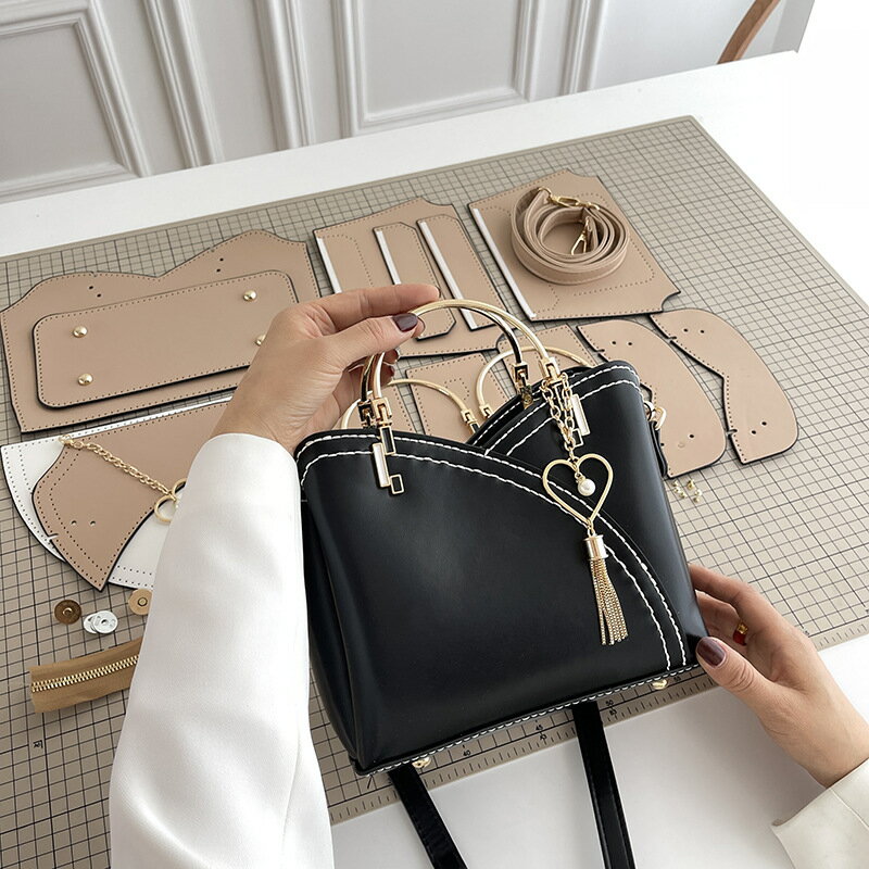 【10%OFFクーポン配布中】送料無料 ショルダーバッグ diyキットレザーウォレットクラフトキットブラック ソーイングクロスボディバッグ ハンドメイド手作り編み物バッグdiy 手芸 バッグ アクセサリー クラフト 材料