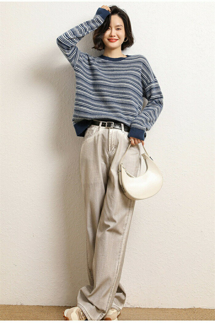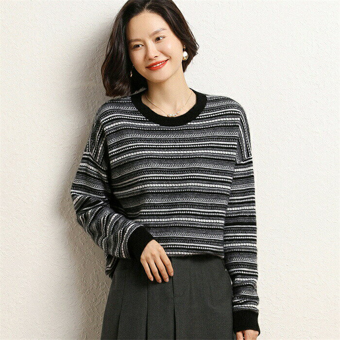 カシミヤ カシミヤセーター レディース ニット トップス ゆったり ストライプ柄 シンプル 長袖 秋冬 上品 細見え効果 綺麗め 体型カバー 着回し 冷え性 保湿性 弾力性 高品質 厚手 20代 30代 40代 50代 母の日 ミセス 実用的 ギフト プレゼント