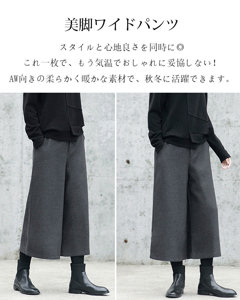 ガウチョパンツ ワイドパンツ 秋冬 レディース パンツ ガウチョ ワイド ボトムス 冬 ズボン キュロット パンツ ロング ハイウエスト ウエストゴム 暖かい きれいめ 大きいサイズ ロングパンツ 9分丈 無地 おしゃれ オフィス