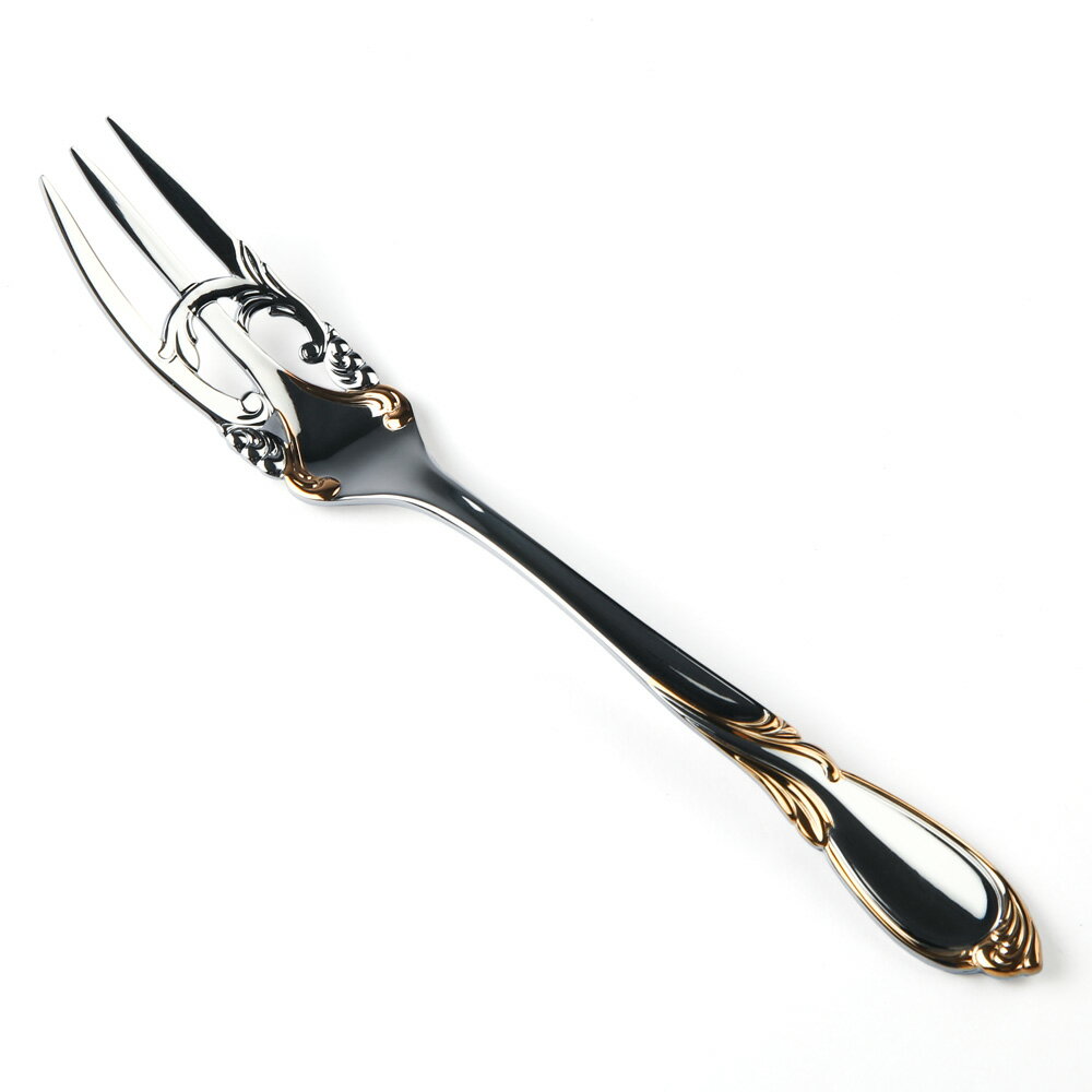 デコラティブでありながら、上品な印象のカシェシリーズ。シリーズの中でもデザートフォークのデザインはとても個性的で、国内のカトラリーでは他に類を見ません。主に海外のデパートで販売されており国内で手にする機会は貴重と言えます。燕市の彫金師が手彫りした型から生み出される繊細な文様が、優雅な雰囲気を醸し出しています。ハンドルなどに施されている部分的な金メッキは、ひとつひとつが職人の手作業によるもの。ゴールドとシルバーのコンビネーションが重厚さと清楚さを織りなす、上級のカトラリーです。新鮮で、なおかつクラシカルな表情は、使う人に上品な印象を与えます。新品からアンティークを育てる気持ちで、ぜひ永くご愛用いただきたいお品です。※デザートという名前ですが、日本人にちょうどいい一般的な食事用サイズです。サイズ:191mm材質:18-8ステンレス鋼仕様:ミラー/ゴールドアクセント仕上生産国:日本(新潟県燕三条)関連キーワード:山崎金属工業株式会社 YAMACO クリスマス カトラリー 食事用フォーク おしゃれ ギフト プレゼント テーブルコーディネート ゴールド シルバー ハイセンス 温もり エレガント 繊細 シャープデザイン 重厚感 モノトーン カラーコーディネート ラグジュアリー 可愛い エレガント 欧米 晩餐会 ノーベル賞 優美 豪華 燕市 made in Tsubame▼ 同時に見られている商品 ▼カシェ CACHE デザートフォーク(テーブルフォーク) ステンレス ゴールドアクセントフィニッシュ