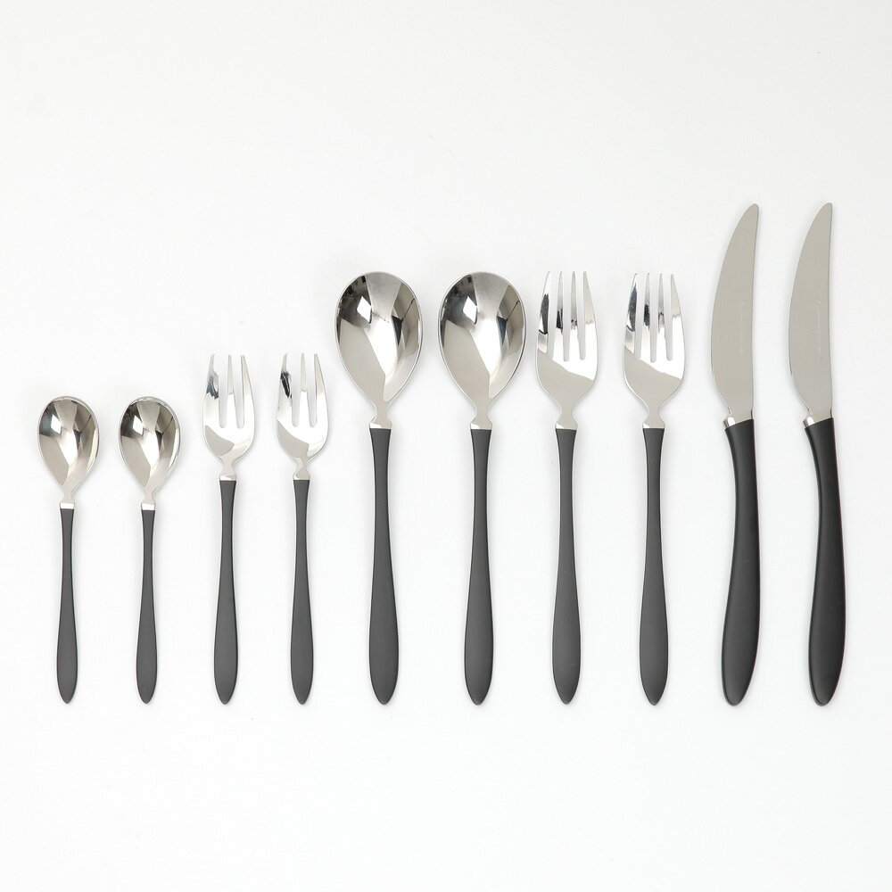 食事用カトラリー(ディナーナイフ・ディナーフォーク・ディナースプーン)とケーキフォーク、ティースプーンの計5点×2の10本入りペアセットです。新築祝やご結婚御祝などにおすすめの箱入りセット。日本製の高品質カトラリーはプレゼントに喜ばれること間違いなし。ラッピングや熨斗にも対応致します。ステンレスに色をのせるのには特殊な技術が必要です。この商品はハンドルに樹脂塗装をして剥がれない加工をしています。クラシカルなデザインとマットな表面加工で和洋問わず組み合わせてお使いいただけます。華奢なラインは女性の手にも持ちやすく、お箸と併用しても馴染むデザインです。サイズ:ディナーナイフ:230mmディナーフォーク:200mmディナースプーン:195mmケーキフォーク:160mmティースプーン:140mm材質:ステンレス(18-10 ステンレススチール ミラー仕上げ) 樹脂塗装食洗器対応生産国:日本関連キーワード:カトラリー カトラリーセット ギフトセット スプーンセット 食事用 ペアセット 夫婦セット 2ペアセット 10p 10pc テーブル デザイン スタイリッシュ おしゃれ オシャレ かっこいい 綺麗 雰囲気 控え目 シンプル シルバー 業務用 飲食店 洋食 イタリアン フレンチ レストラン ビストロ 喫茶店 カフェ プレゼント ギフト 贈り物 クチポール 細身 日本製 燕三条 ▼ 同時に見られている商品 ▼カトラリーギフトセット10本セット 食事用カトラリー(ディナーナイフ・ディナーフォーク・ディナースプーン)とケーキフォーク、ティースプーンの計5点×2の10本入りペアセットです。新築祝やご結婚御祝などにおすすめの箱入りセット。日本製の高品質カトラリーはプレゼントに喜ばれること間違いなし。ラッピングや熨斗にも対応致します。