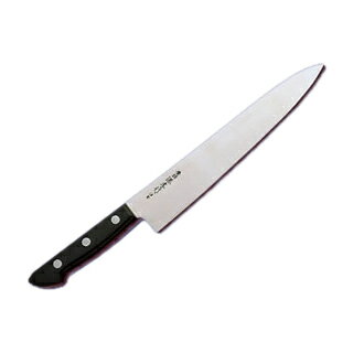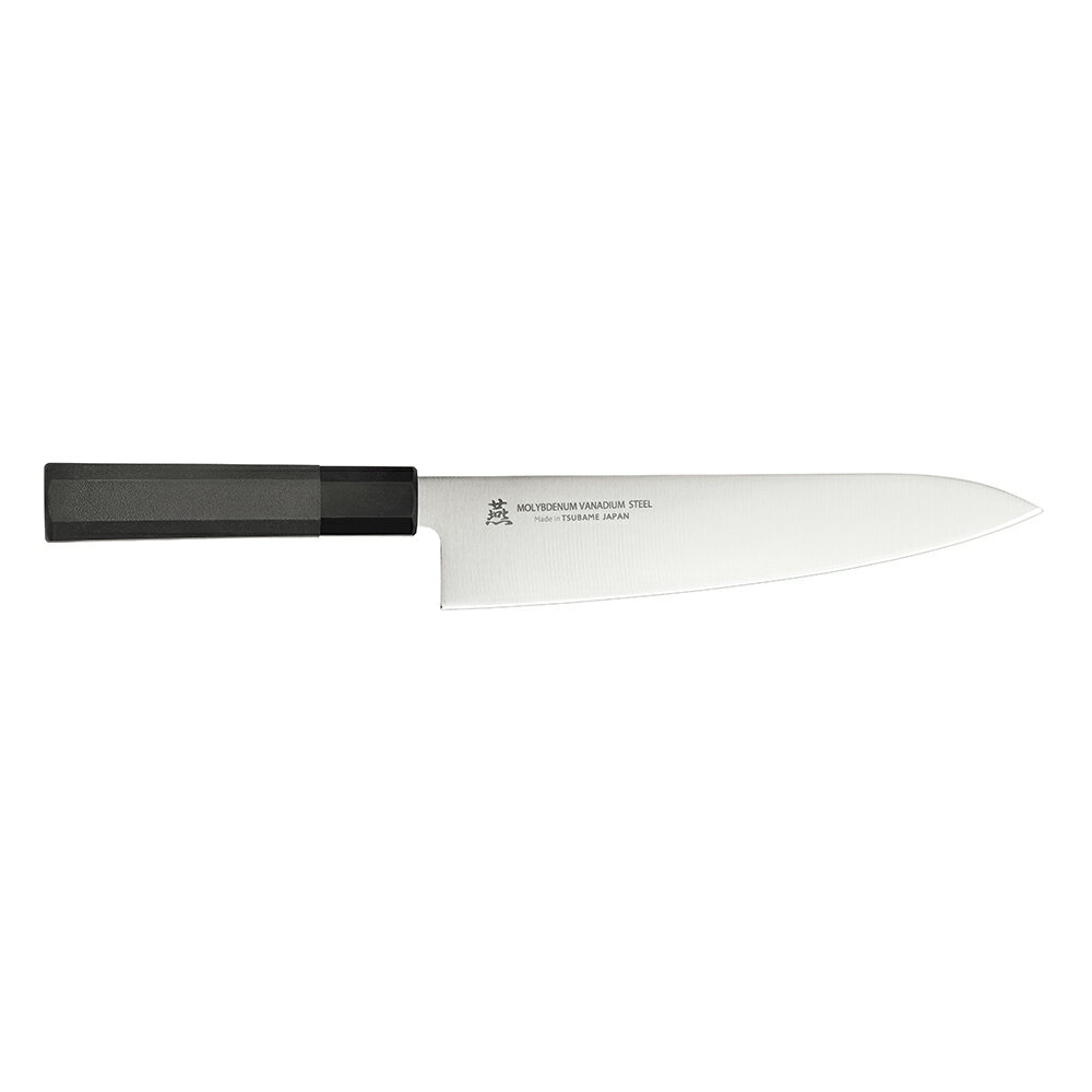 「丸」の牛刀はやや小ぶりなサイズの仕上がりです。本格的牛刀としての機能性・切れ味と同時に、ご家庭の台所でも、さらに主婦の方でも持て余すことのない使い勝手の良さを兼ね備えるサイズ設計になっています。【材質】●刀身部:440A モリブデン鋼(HRC硬度56-58)●ハンドル部:積層強化木にステンレス象嵌【全長(cm)】34【刃渡り(cm)】20.5【生産国】日本製【丸MARUシリーズについて】「丸 MARU」シリーズは、ご家庭のどんなキッチンにおいても素敵に見えるよう“和モダン”をテーマにデザインされています。もちろんプロの方にもお使いいただけるようなスペックにもなっています。手に馴染みやすく、グリップ感に優れた段差のまったくないスムーズな握り手は、多くの工程を経て一つ一つが職人たちの手作業に委ねられています。また、「和 NAGOMI」というブランド名には、この包丁をお使いいただくことで出来上がる料理を囲むご家族がいつも心優しく健康で、笑顔に溢れるライフスタイルを送れるような願いも込められているのです。また、デザイン性に優れた包丁はギフトとしても喜ばれる商品です。是非ご利用ください。【三星刃物について】三星(みつぼし)刃物は、世界三大刃物の産地として有名な関市で明治6年に創業しました。この関には良質の焼刃土、松炭、そして長良川と津保川の清廉な水があり、鎌倉時代より優秀な刀鍛冶が集まってきました。 こうして名刀の産地となった関の卓越した伝統技術は、現代の刀匠や刃物産業に受け継がれているのです。三星刃物ではこれまでの長い歴史の中、欧米各国の多くの刃物メーカーの製品を生産し、膨大なノウハウを蓄積してまいりました。その技術力がオリジナルの「和 NAGOMI」には余すところなく反映されています。ブレード材の様々な成分の構成、温度差によって分子構造レベルから素材を整える多くの工程から、“名人”による最後の研ぎに至るまで、「和 NAGOMI」ブランドは贅沢に時間と手間をかけて丁寧に作られているのです。【ご使用上の注意】・この包丁は調理を目的としたものですので、調理以外には使用しないてください。・刃物ですので、取り扱いや保管には充分注意してください。・破損したり、変形した場合は使用しないでください。・洗う際は刃先に充分注意してください。・乳幼児の手の届かない安全な場所に保管してください。・包丁の背に指や手のひらを直接当てた状態で、力を入れないでください。背の部分の角部で指や手のひらを傷つける恐れがあります。カボチャなどの硬いものを切る時は、手袋をはめるか、背に布などを当ててご使用ください。・骨付き肉や冷凍食品などの硬い物を切る時は専用の包丁をご使用ください。・金属や石などの硬いものの上では使用しないでください。破損の原因になります。・左右にねじったり、衝撃を伴う使用は避けてください。刃が欠けたり、折れたり、刃先の曲がる原因になります。・刃身を火であぶったり、近づけたりしないでください。焼きなまりや破損の原因になります。・最初に使用する際は、スポンジなどに食器用洗剤を付けて充分に洗い、よくすすいでください。・電子レンジやオーブンレンジの中に入れて、乾燥させないでください。・お子様が使用する際は、大人が使い方を教えてください。【お手入れ上の注意】・使用後は汚れを落とし、水分をよく拭き取ってください。汚れが残っていたり、水分が充分に拭き取れてないと、さびの原因になります。・切れ味を持続させるために、月に1〜2 回は研ぐようにしてください。[魚 肉 野菜 高級 ステンレス 刃物 関 日本製 国産 家庭 料理 調理器具 主婦 シェフ プロ おすすめ ギフト プレゼント 贈り物 結婚祝い 引越し祝い よく切れる]関連商品和 NAGOMI スライサー包丁 プレゼント 名入れ 結婚祝い 出産祝...和 NAGOMI 三徳 包丁 万能 文化 高級 ステンレス 母の日 ギ...和 NAGOMI ペティナイフ 刃渡り 155mm 440A 包丁 プ...14,300円13,750円11,000円和 NAGOMI パーラー包丁 プレゼント 名入れ 結婚祝い 出産祝い...【ランキング1位 6冠】 ミソノ440 牛刀 No.812 210mm...正広作MV-S 牛刀 210mm 160g 13611包丁 ナイフ包丁...9,900円14,400円13,710円ランキング1位 牛刀 包丁 ダマスカス 210mm 貝印 関孫六 家庭...源正守 ツバ付 白銀安来鋼 牛刀 刃渡り 210mm #0241062...堺翁流 日本鋼牛刀 240mm 黒合板柄 OGJ240 #023007...9,680円11,090円14,310円