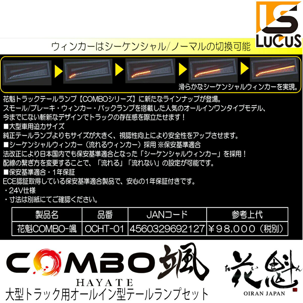 【11/20~11/27ポイント10倍】 花魁 JAPAN COMBO 颯 シーケンシャル LED テールランプ 24V 左右セット トラック 汎用 テール ランプ ライト類 人気 おすすめ おしゃれ テールランプ テールライト カスタム パーツ カスタムパーツ 外装 外装用品 外装パーツ 【OCHT-01】