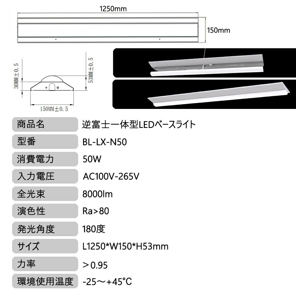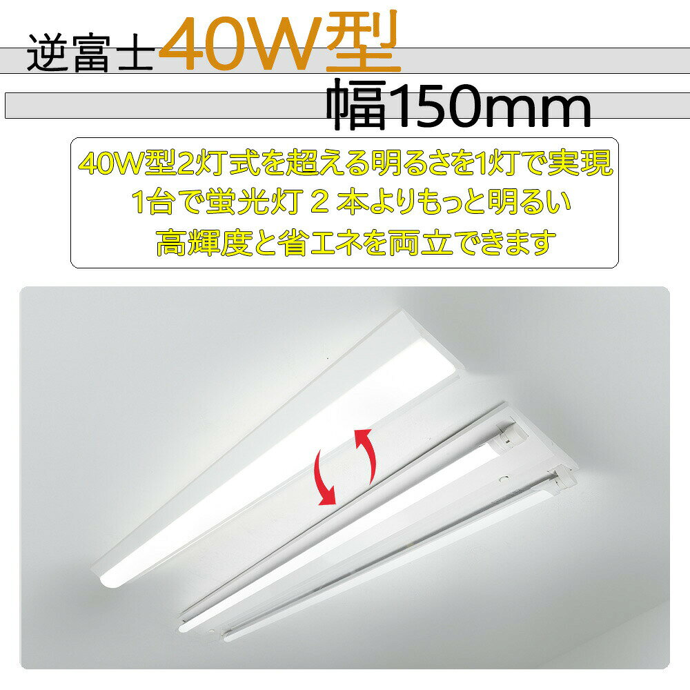 LED ベースライト 40w 器具一体型 40形 直付型 40W形2灯相当(fl40 flr40 fhf32)幅150 LED蛍光灯 40W形 天井直付け 逆富士形 消費電力50W 8000LM 長さ1250mm シーリングライト キッチンベースライト 施設照明 店舗照明 事務所 病院 工場 階段 PSE認証 三年保証 送料無料