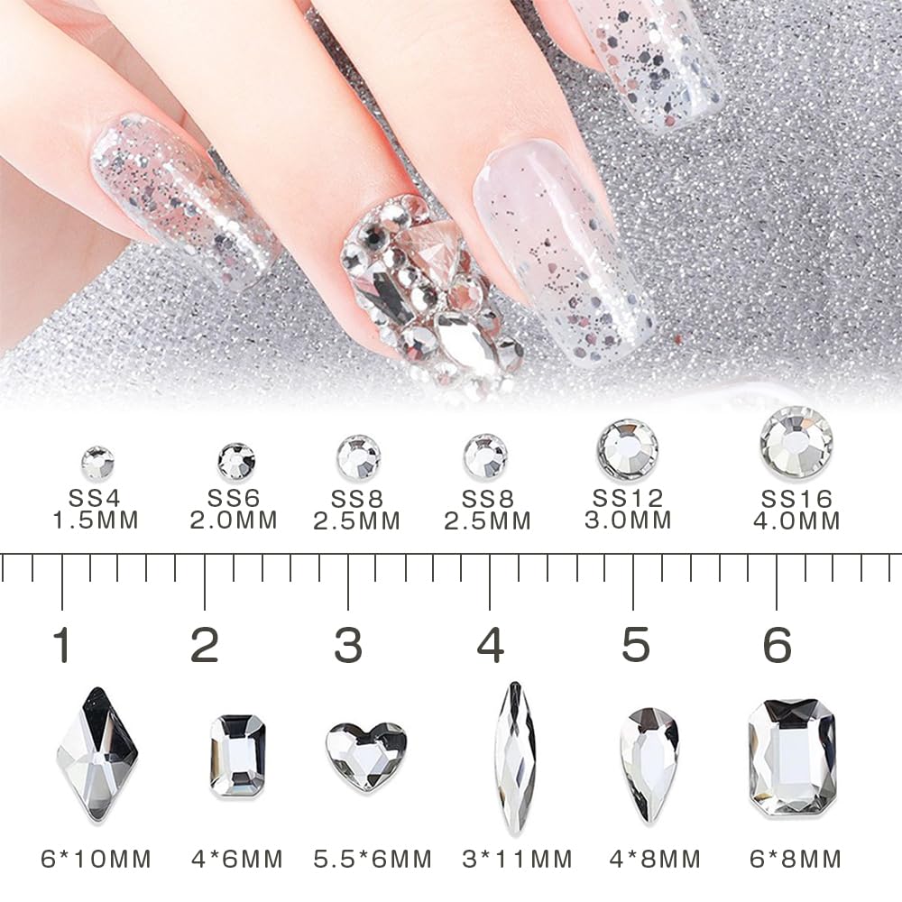 【送料無料】ESJNNK ラインストーン ネイルラインストーン 3点セット ネイルデコレーション 3D 混入ネイルアートパーツ クリスタル セルフネイル レジン ネイルセット ハンドメイド素材 DIY 手芸パーツ (シルバーA)