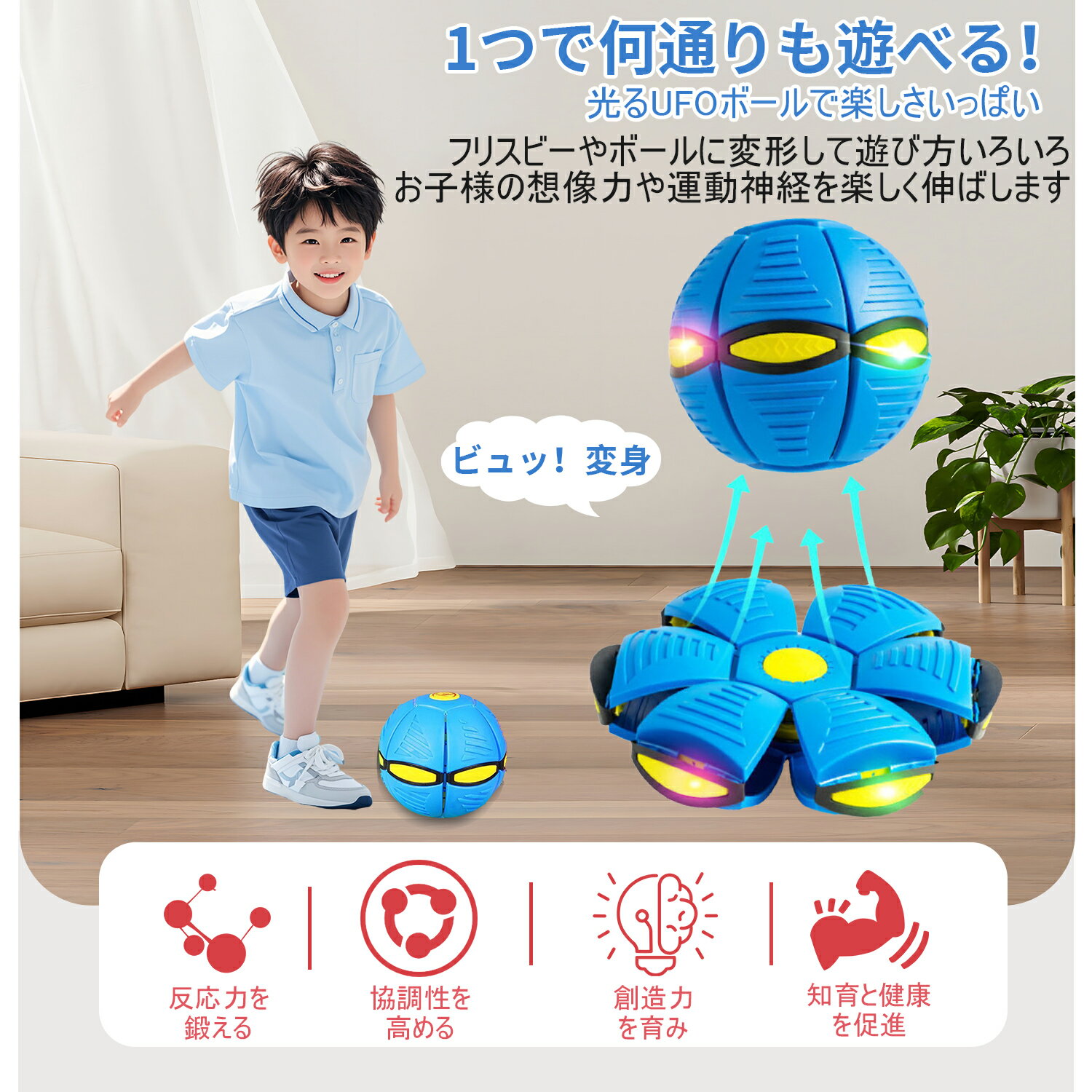UFOマジッ 変形ボール キックボール 変形6モード おもちゃ 子供用 運動不足解消 ペット遊び ストレス解消 LED発光 ボール 耐久防水 安全素材 アウトドア グッズ 家族で遊べる 3歳以上 キッズ プレゼント用 多機能ボール