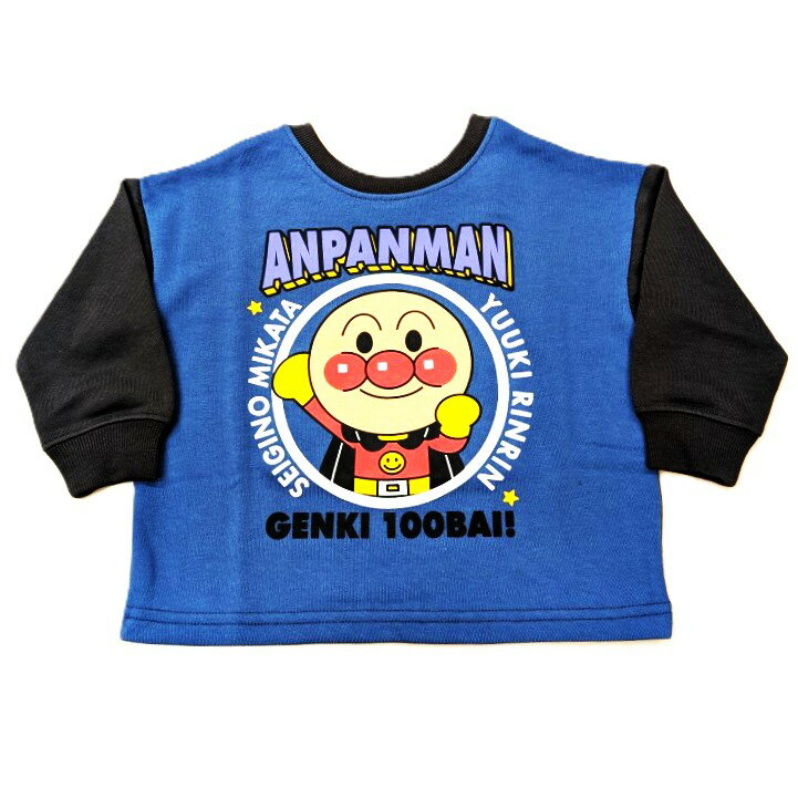 アンパンマン どっちも前だよ プリント 長袖 スウェットシャツ トレーナー 男の子 女の子 ベビー キッズ 子供 裏毛 ピンク ネイビー 秋 冬 春 服 TV キャラクター 90cm 95cm 100cm
