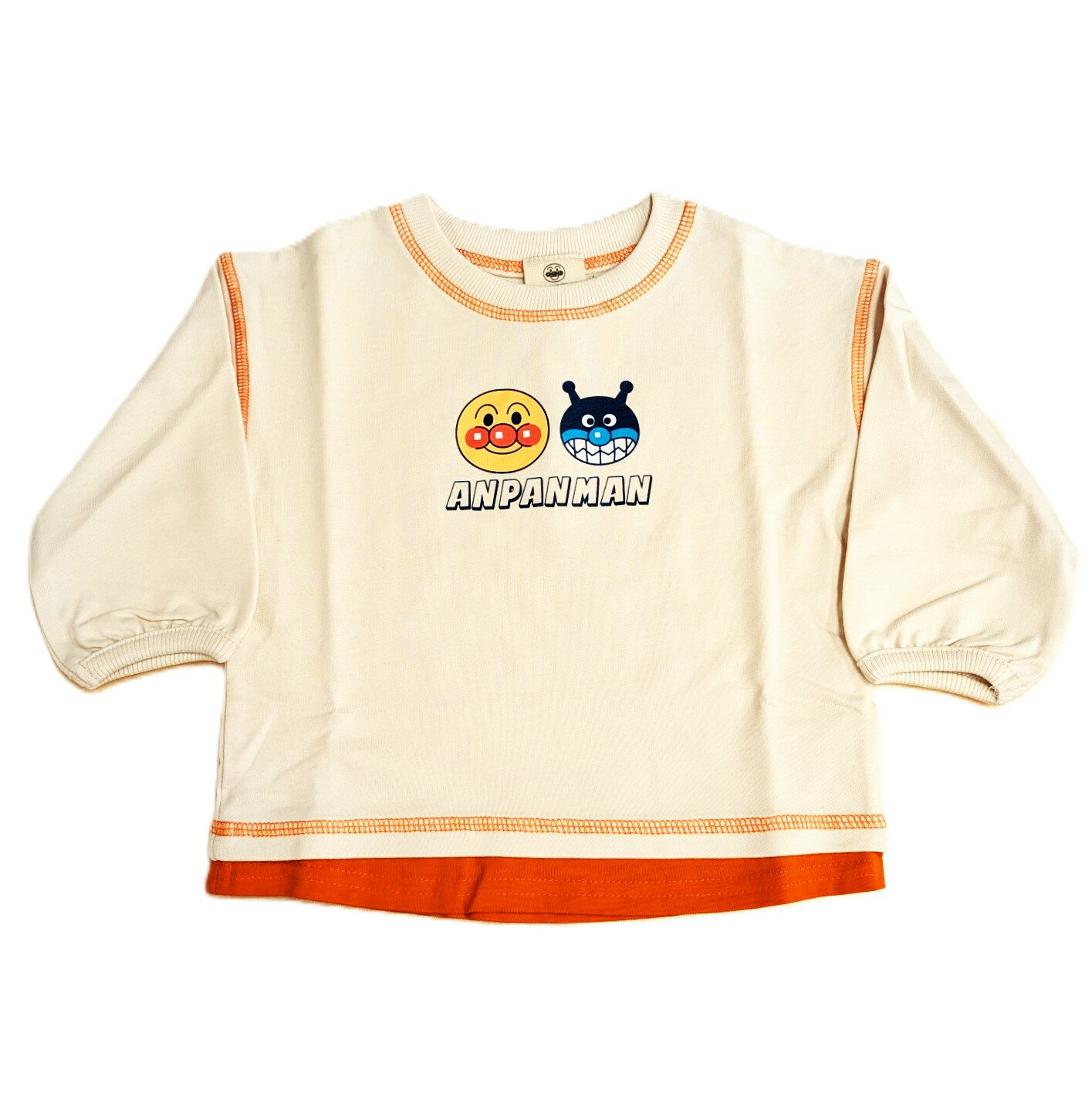 アンパンマン 前後プリント スウエットシャツ トレーナー 長袖 秋 冬 春 服 男の子 女の子 ベビー キッズ 子供 90cm 95cm 100cm アイボリー サックス アンパンマン バイキンマン