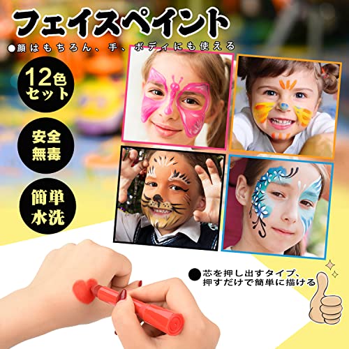 mefeny フェイスペイント 12色 ボディペイント マタニティペイント クレヨン 顔ペイント クリスマス 安全 エコー 無毒 簡単水洗 子供使用できる 絵の具 クリスマス 仮装 コスプレ ハロウィン マタニティフォト ベリーペイント 小道具 スポーツ応援