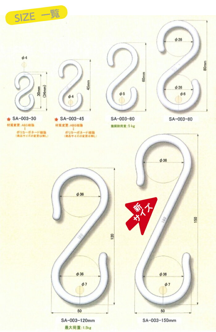 Sカン SA-003 120mm 白色 5個入り エスカン S字フック 大きいタイプ Sフック エスフック ホワイト プラスチック製 吊下げ 店舗什器 店頭POPパーツ ディスプレイ ストック