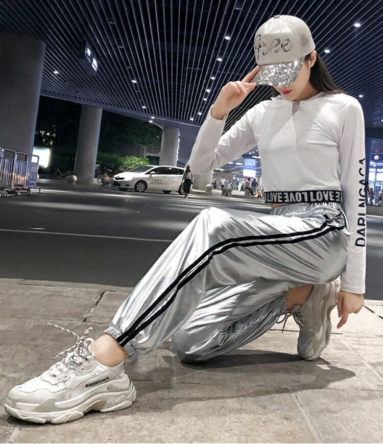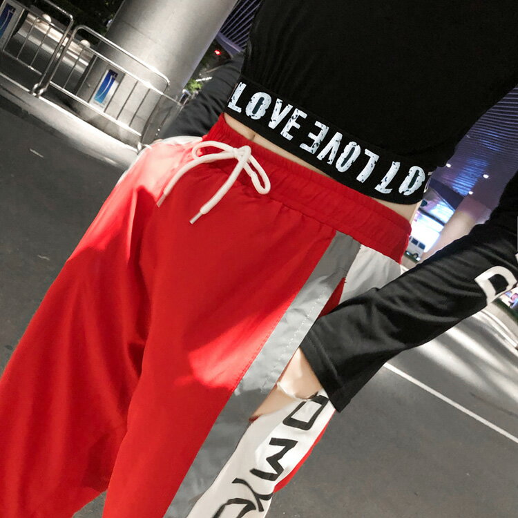 レディース ガール ダンスウェア パンツ トレーニングウェア スポーツウェア ヒップホップダンス メタル ジャズダンス ストリートダンス Kポップ Bガール シンプル 長ズボン ロングパンツ シルバー レッド