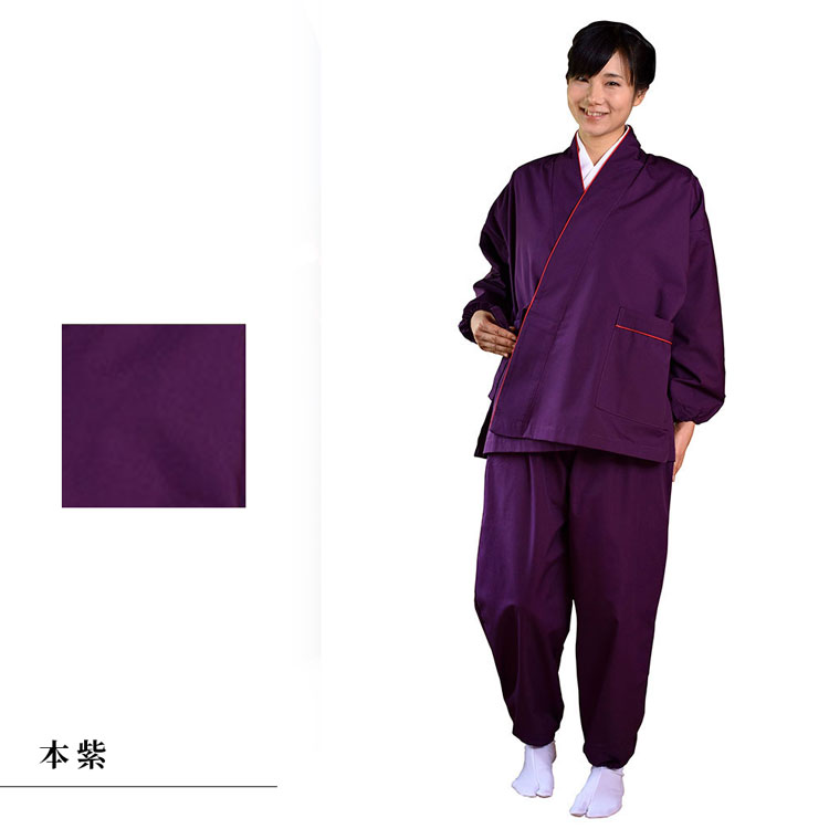 【送料無料】女性用洗える通年さむえ(本紫・紺・黒・緑・紅芋・群青・米)(M-L)