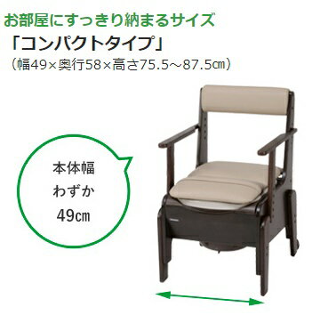 ●カラー/ダークブラウン ●サイズ/ 幅49×奥行58×高さ75.5〜87.5cm (便座までの高さ34〜46cm、3cmピッチ5段階調整) ●最大使用者体重/100kg ●構成部材/ 本体:天然木(ウレタン樹脂塗装)、 座面:ウレタンフォーム・合成皮革、 背もたれ:ウレタンフォーム・合成皮革、 バケツ・便座・防汚トレー:ポリプロピレン ●重量/14.0kg ●特徴/ ・全タイプ長穴便座で、ふき取りしやすい。前に尿こぼれしにくい尿漏れガード付き ・新バケツで持ちやすく、洗いやすい ・移動が楽なキャスター付 ・本体幅わずか49cmのコンパクトサイズ