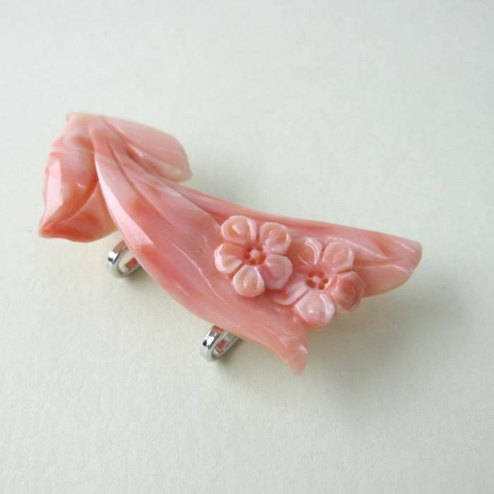 商品説明珊瑚の種類ピンク珊瑚 サイズ・素材大きさ:20×47.8ミリ 厚さ:約5.7ミリ 金具:真鍮(四分紐が通ります)(特徴など)珊瑚職人が、丁寧に彫り上げた、可愛いサクラソウの花の帯留です。 サクラに似た花を咲かせる草花で、日本人になじみ深い花です。 和装をより上品に演出してくれます。備考*天然の「マキ」が見られますので、ご了承下さい。