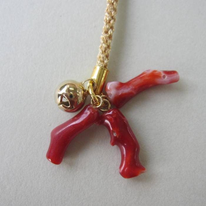 商品説明珊瑚の種類高知産血赤珊瑚 サイズ珊瑚の大きさ(約):16~17×7~8ミリ根付の長さ:約9センチ、金色。 (特徴など)土佐沖産の濃い血赤珊瑚の枝根付です。 魔除け・厄除け・幸運のシンボルとしてお使いいただけます。 お守り代わりにバックやお財布に入れていつも身に着けてみてください。還暦のプレゼントなどにも喜ばれています。備考*天然特有の「フ」や「穴」が見られますが、予めご了承下さい。※カラーグレード:4.5