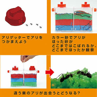 商品情報商品仕様●セット内容:観察器、ピンセット、スポイト、赤砂・青砂・緑砂×各100g●サイズ:観察器/190×18(土台37)×12mm、ピンセット/135×11×9mm、スポイト/径13×150mm●材質:観察器/PS、スポイト/PE、ピンセット/ABSOPP袋150×200mmふだん目にすることがないアリの巣作りがよくわかる。自然のアリをつかまえて飼育する観察キットこの商品は アーテック アリの暮らし 観察セット 055802 観察キット 夏休み 自由研究 ポイント ふだん目にすることがないアリの巣作りがよくわかる。自然のアリをつかまえて飼育する観察キット ショップからのメッセージ 納期について 4