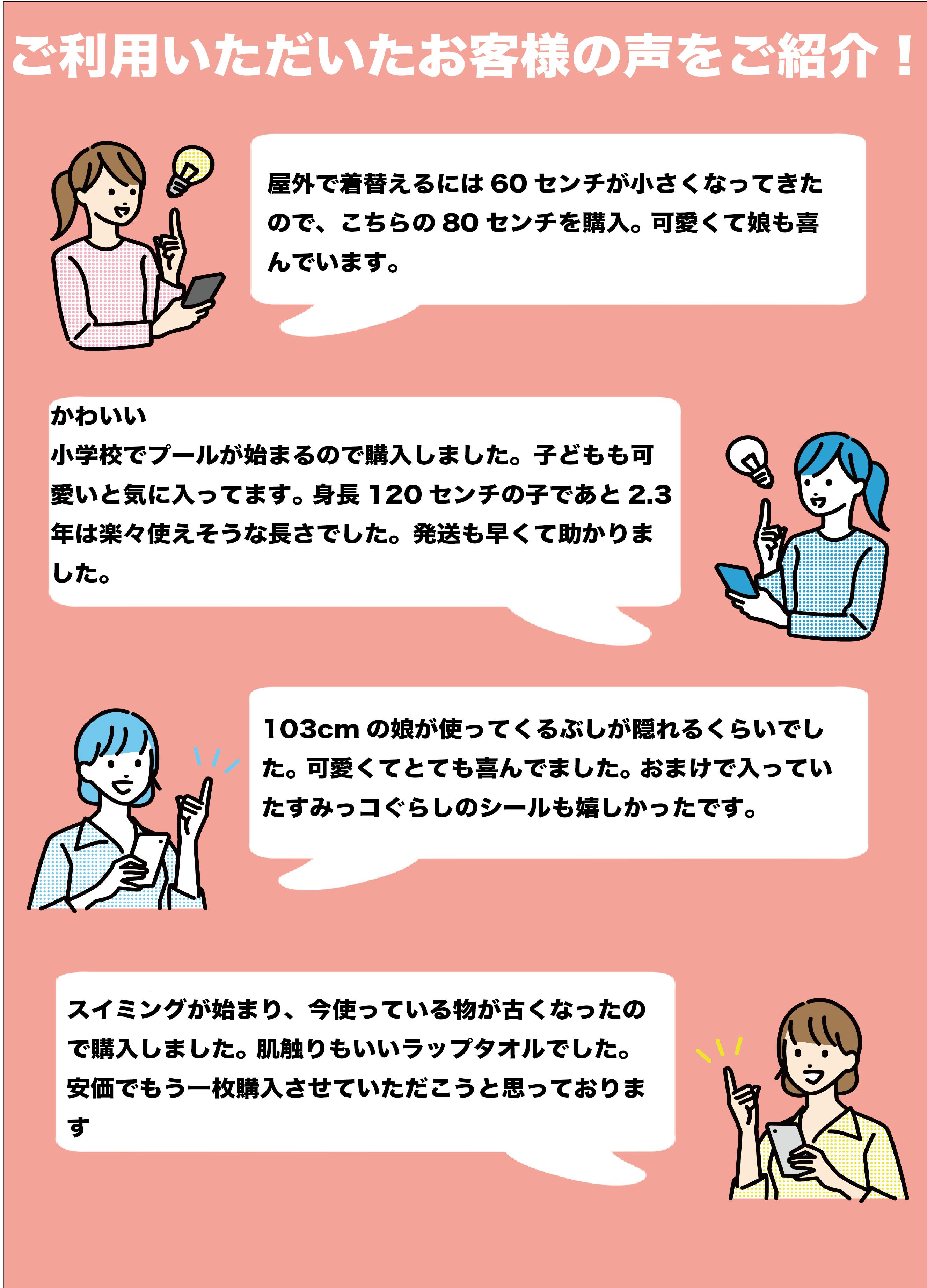 商品情報サイズ丈80cm×幅120cm素材綿100%仕様染料シャーリングプリント【10%OFF★31日まで】キャラクター ラップタオル すみっコぐらし 80x120cm 80cm丈 巻きタオル 男の子 女の子 子ども キッズ プール 小学生 中学生 学校 水泳 スイミング 海水浴 人気キャラクター すみっコぐらし のラップタオル。80cm丈でなので小学生から中学生までお着替えラクラク。 2