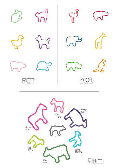 知らない間に無くしていたり、使い捨てにしている輪ゴム…。 デザインを加えることで大切にしたいものに生まれ変わりました! 使っても、使っても、元のかたちにきちんと戻る、動物型の不思議でかわいいシリコン製の輪ゴムです。 ちょっとしたギフトや、たとえば焼き増しをした写真を渡す時、借りたCDなどを返す時に使っていただければ、きっとよろこばれることでしょう。 もちろん子供のお弁当を包むときや、オフィスのデスクの中に飼っても楽しいですよ。 哺乳瓶の乳首にも使われている安心素材のシリコンは、耐熱性(190℃まで!)、耐冷性(-40℃まで!)に優れているので、冷凍庫の中や湯煎にも耐える事ができます。 また、耐光性にも優れているので、永く使っても普通のようにボロボロにもなりません。 長期間使っていると、少し太ってきますが、そのまま少しおいて置けばある程度戻ります。 バリエーションは現在3種類。 ギフトボックス限定の半透明な動物たちとビビットな色の動物たちがそれぞれ12匹ずつ、計24匹入った "ZOOギフトボックス" "PETギフトボックス" また、新登場の"Farmギフトボックス" には愉快な牧場の仲間達が合計28匹入っています。 ギフトボックス ●サイズ/W85×D68×H27mm ●材質/シリコーンゴム ●種類/PET、ZOO、Farm ●内容/PET・ZOO→6種類の動物が合計24匹入っています。Farm→7種類の動物が合計28匹入っています。