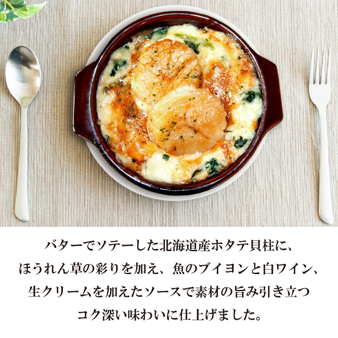 北海道ホタテグラタン (冷凍食品) 商品説明 名称 グラタン 原材料名 牛乳(国内製造)、ほたて(北海道)、マカロニ、野菜(たまねぎ、ほうれん草)、ナチュラルチーズ、魚のブイヨン、バター、生クリーム、ほたてエキス調味料、小麦粉、植物油脂、白ワイン、砂糖、チキンエキス調味料、昆布だし、米粉、パセリ/ 加工デンプン、調味料(アミノ酸等)、カラメル色素、セルロース、(一部に小麦・乳成分・大豆・鶏肉を含む) 賞味期限 別途商品に記載 保存方法 −18℃以下で保存してください 凍結前加熱の有無 加熱してありません 加熱調理の必要性 加熱してお召しあがりください 製造者サンマルコ食品株式会社 北海道札幌市厚別区厚別東4条1丁目1番48号 原材料配合割合:ほたて16.9%(仕込時) 製造所 札幌工場 北海道札幌市厚別区厚別東4条1丁目1番48号 調理方法:凍ったままのグラタンを袋から取り出し、内装をはずして、 下記の調理設定を目安に電子レンジで加熱して下さい。 1個500W 約3分20秒 600W 約2分40秒 ●調理時間は、商品の温度および機種や個数などの条件によって、多少異なりますのでご注意ください。 ●冷たい場合は、約10秒ずつ再加熱してください。 ●やけどには十分注意してください。 *この製品の製造工場では、えび・かに・くるみ・卵を含む製品を製造しています。 栄養成分表示1個(145g)当たり エネルギー 193kcal たんぱく質 10.4g 脂質 11.2g 炭水化物 14.5g 食塩相当量 1.2g (推定値) ホタテグラタン 冷凍グラタン シーフードグラタン 海鮮グラタン お取り寄せグルメ 冷凍食品 冷食 冷凍保存 レンチングルメ お惣菜 お取り寄せ 北海道 ご褒美 おかず 北海道産 ホタテ 焦がしバター お中元 お歳暮 ギフト クリスマス画像はイメージです