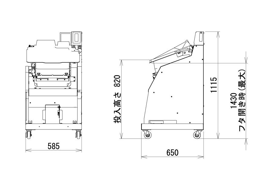 機 種 SUW 酢合わせ機4 ■ 生産能力/2~4升 / 約4分 ■ 電源/単相 100V ■ 消費電力/120W ■ 重量/89kg ■ 裾付寸法 585(幅)×650(奥)×1115(高) ※フタ開時 1430(高さ) ※機械デザイン・仕様につきましては、予告無しに変更する場合があります。 ※梱包費用と試運転費用が別途かかります。試運転作業は必須です。 ※ご注文時に納期をご確認ください。 酢飯を均等に混ぜ合わせる事が可能な機械です。 新技術の浮かし切り(Flying Mix)により、ムラ無くさらりと 細かなシャリ切りを実現。フタ自動開閉方式を採用。