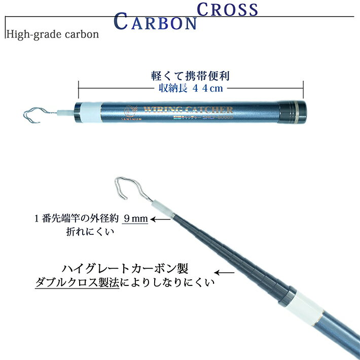 「クーポン配布中」SANSHUN 10m伸長 ストロングショート ケーブルキャッチャー (SHCF-10000S) ハイグレードカーボンダブルクロス強化、頑丈な太い先端竿、コンパクトな収納長、軽量高剛性ボディ、強く軽く使いやすい!点検口など狭い所でも快適に手繰り寄せる ケーブル索引具