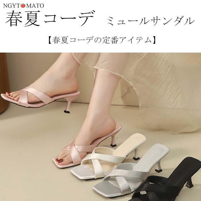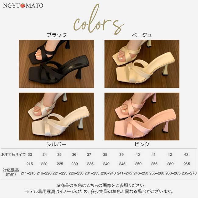 ミュールサンダル レディース オープントゥ ハイヒール サンダル かかとなし ミュール シンプル シルバー 美脚 履きやすい 歩きやすい おしゃれ カジュアル 大人