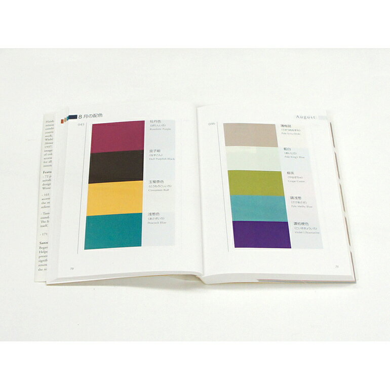 <特 長> ●和田三造による『配色總鑑 B篇』(昭和9-10年)と、『新作五百図案集』(昭和13年)を復刻。 ●日本の季節をイメージした72パターンの多色配色のほか、昭和初期の服飾、インテリア、グラフィックデザインなどから161点の配色例を提示します。 ●デザイン、ファッション、インテリア、イラスト、写真、ライティング…全てのクリエイティブな作業に役立つ一冊です。 ●日本の12カ月にふさわしい3〜7色の多色配色を72パターン掲載。 ●デザイン作業はもちろん、洋服や着物、インテリアコーディネートなどのアイデアとしても活用できる。 ●昭和初期の服飾、インテリア、グラフィックデザインなどから165点の配色例を提示。 ●大正・昭和の雰囲気がよくわかり、イラストや時代考証にも最適。 ●「長春色(ちょうしゅんいろ)」、「花浅葱(はなあさぎ)」、「梅鼠(うめねず)」…など、趣のある日本の伝統色名を英訳付きで掲載。 ●美しい言葉からもインスピレーションを受けられる。 ●巻末には、切り取って使える172色のカラーチップ付き。 ●著:和田三造。 ●判型:A6。 ●総頁:336頁。 ●製本:並製。
