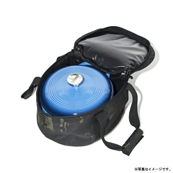 <特長>●10インチサイズまでのダッチオーブンが収納可能な専用ケースです。●内蔵されたクッションでしっかりとオーブンを保護します。●内側とヒール付きの底面にはPVC加工(防水)が施され、汚れも落としやすく、耐久性にも優れています。●リニューアルタイプは、従来よりも高さを上げ収納力をアップ。深めのダッチオーブンもすっきり収納できます。メイン素材もより上質なTP-700 ポリエステルに変更しました。<仕様>◆素 材:TP-700 POLYESTER(ポリエステル)◆生産国:MADE IN CHINA(中国)◆サイズ:(長辺32、短辺28、高さ19)cm◆カラー:BLACK CAMO(ブラックカモ)◆備 考: *サイズは実測値になります。多少の誤差はご容赦ください。 *モニターによって色の見え方が異なる場合があります。 *商品によって柄の出方が異なる場合がございます。 *ロットにより多少デザインが変更になる場合がございます。ダッチオーブンケース R (ブラックカモ)。
