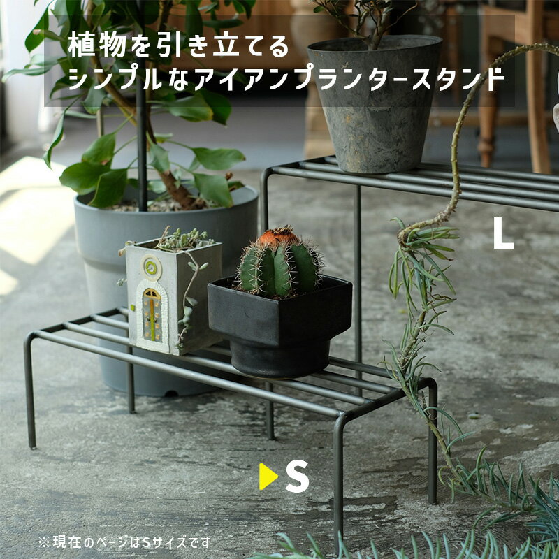 KNOP plant stands WIDE Sサイズ ノッププラントスタンド アイアン プランタースタンド<特長>●植物を引き立てるシンプルなアイアンのプランタースタンド。●屋外の使用時も雨水が溜まりにくく、風にあおられにくいよう脚も細くデザインしました。●植物を育てる環境として大切な排水性・通気性に優れています。●プランターと地面の間に空間を作ることで、害虫や地熱から植物を守ります。<仕様>◆サイズ(ワイド):S約50x18x15cm◆素材:アイアン■ご注意※鉄本来の素材感を活かすため、塗装は最小限にしております。※錆止めを施しておりますが、ご使用環境によっては錆が発生しやすくなります。また、納品の際にすで錆が発生している場合もございますので予めご了承ください。※本製品は植物台として作られております。間違った使い方をすると大変危険ですのでおやください。※本製品はひとつひとつ手作業で作られているため、サイズなど若干の個体差がございます。予めご了承ください。 このシリーズを見る 関連品 ガーデニングを見る 関連品 花瓶を見る このブランドを見るKNOP plant stands WIDE Sサイズ ノッププラントスタンド アイアン プランタースタンド
