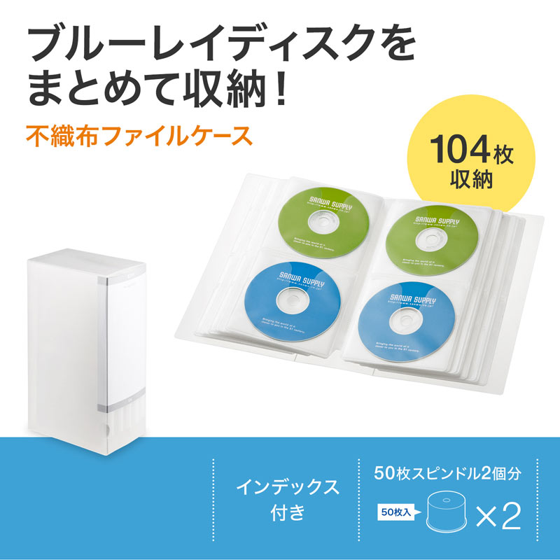 ブルーレイディスク対応ファイル型ディスクケース(104枚収納・クリア) FCD-FLBD104CL サンワサプライ