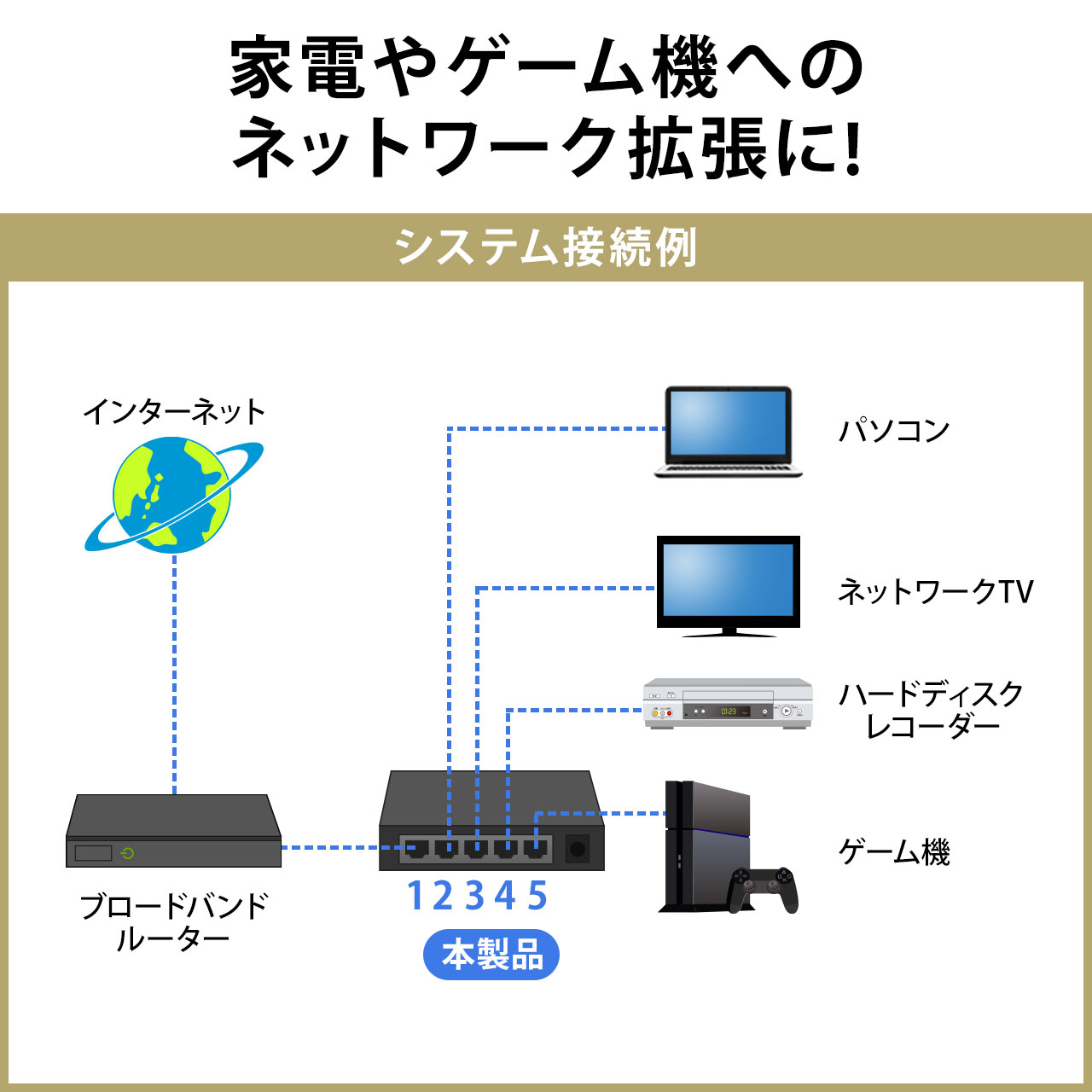 スイッチングハブ LANハブ 5ポート AUTO-MDIX・AUTO-Negotiation・10/100Mbps対応 ACアダプター ファンレス仕様