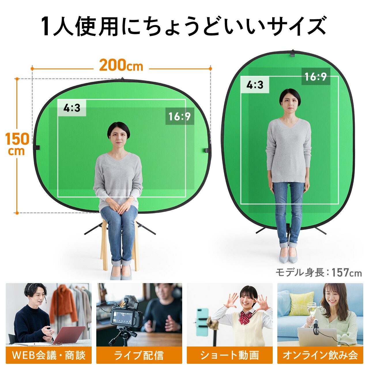 クロマキースクリーン グリーンバック ブルーバック 合成用 スタンド付 折りたたみ可能
