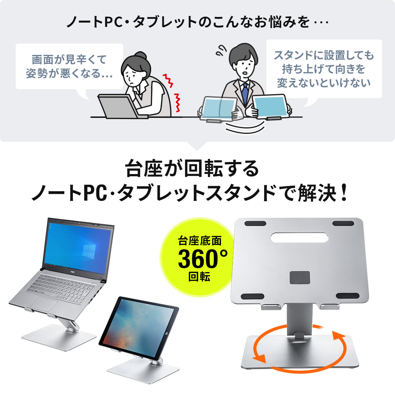 ノートパソコンスタンド 360度回転 高さ 角度調整 アルミ製