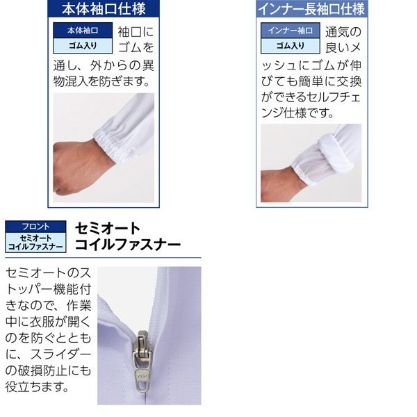 食品用ユニフォーム:常温作業場向け:フレッシュエリア サンペックスイスト/SUNPEXIST FA-304 食品用白衣/工場用白衣 サンペックスイスト コート FA-304 男女兼用長袖コート ピンク S〜4L ポリエステル65%+綿35%、ポプリン ノーポケット 機能:抗菌|制電 特長:フロント:セミオートコイルファスナー|本体袖口:ゴム入り|インナー袖口:ゴム入り フレッシュエリア 常温作業場向け(抗菌素材) 洗濯を繰り返しても効果が持続する強力な抗菌効果で清潔な状態をキープ 生地混率:ポリエステル65%+綿35% 機能:抗菌|制電 給食サービス 学校などの調理現場の衛生管理を安全で快適にサポートするアイテム 病院/福祉施設/社員食堂/学校の方向き 生地混率:ポリエステル65%+綿35% 機能:抗菌|制電