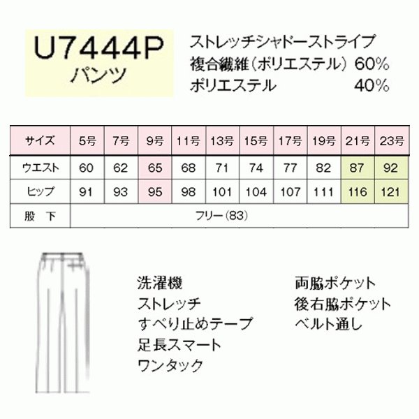 U7444P パンツ(ベーシック) 5号から19号 ユニレディーUNILADY 事務服オフィスウェア