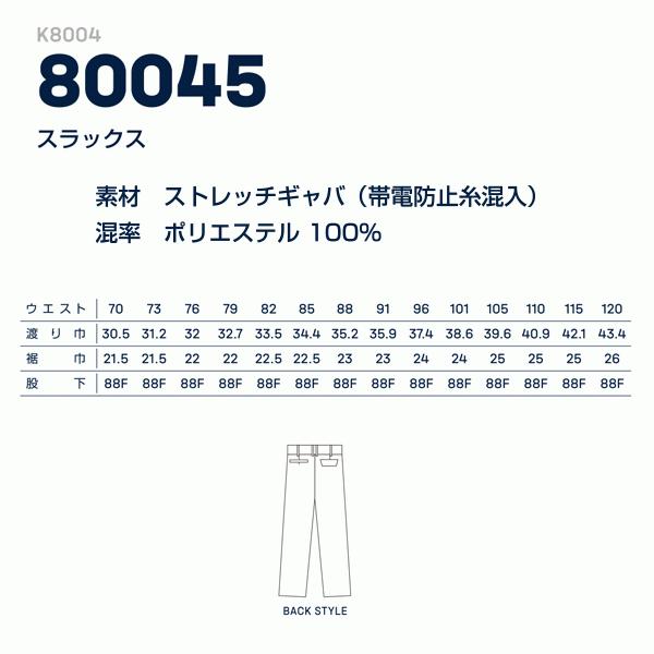 80045 K8004 スラックス 70から88 kansai uniform カンサイユニフォーム22UP大川被服