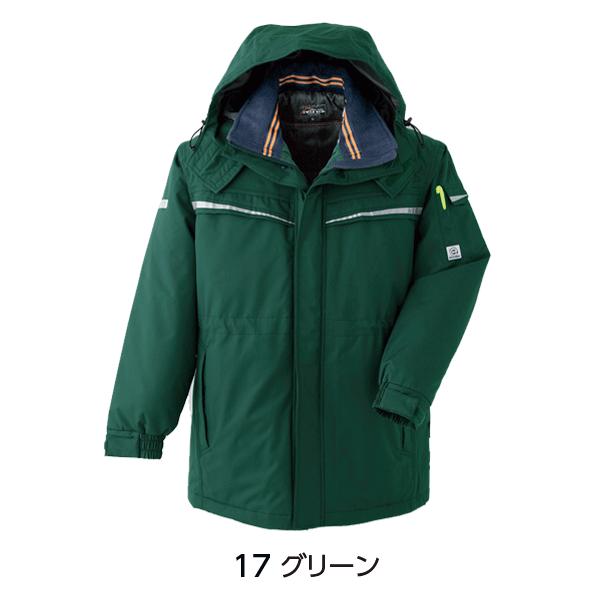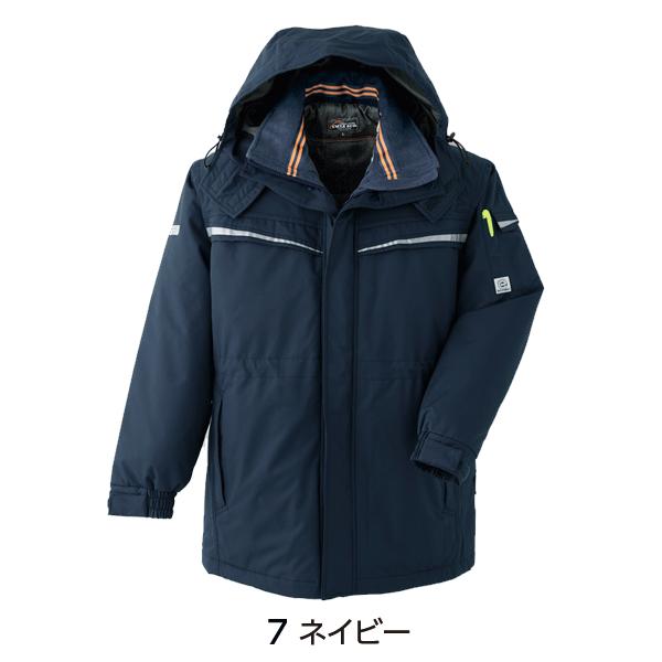 E61100・コート 反射テープで夜間の視認性も確保 素材:エコダイヤドビー 混率:ポリエステル100% ■エコ商品 ■日本製生地 ■反射材 ■撥水加工 ■防水仕様 ■アウトフード