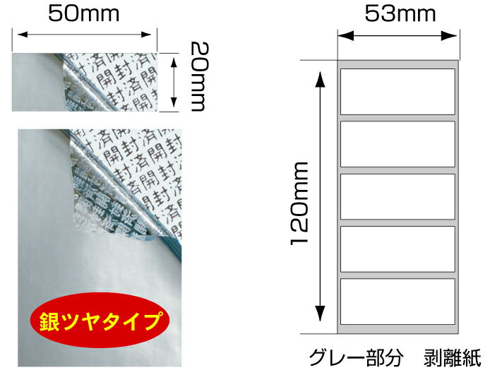 セキュリティシール【改ざん防止シール】10000枚 開封済文字 銀つやタイプ 縦20mm / 横50mm