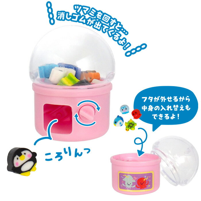 カプセルマシンに入った、水族館の生き物のかわいいミニ消しゴムが登場! ツマミを回すと消しゴムが出てくるギミック付き♪ フタが外せるので、中身を入れ替えることもできます。 パッケージの箱は切り取り線に沿って組み立てると、ディスプレイBOXに早変わり! お祭りやイベントの景品、ノベルティ、配り物におススメです! 【アソート】 ・6種 【セット内容】 ・本体×24 ※セット内容以外は別売りです。 ◆パッケージサイズ(24個):約W270×H175×D60mm ◆本体サイズ:約W43×H55×D43mm ◆パッケージ重量(24個):約588g ◆対象年齢:7歳以上 ◆製品材質:ABS、PS、TPR ◆生産国:中国 ◆メーカー:三洋堂 ※画像と実際の商品は多少異なる場合があります。 ※ご利用の画面の設定・環境により色が違うように見える場合があります。予めご了承ください。 ※ご注文の前に必ずお読み下さい※ こちらの商品は業務用商材の為、一定の割合(1〜2割程度)の不良リスクが発生する可能性がございます。 そのため不良品であっても返品や交換、メーカー対応は一切できません。 アソート商品について、デザイン・カラーが均等数で入っていない場合がございます。 画像と実際の商品の色は多少異なる場合がございます。 一般のお客様は以上をご了承の上ご購入を検討ください。 不明な点などにつきましては、ご購入前に当店までお問い合わせ下さいませ。