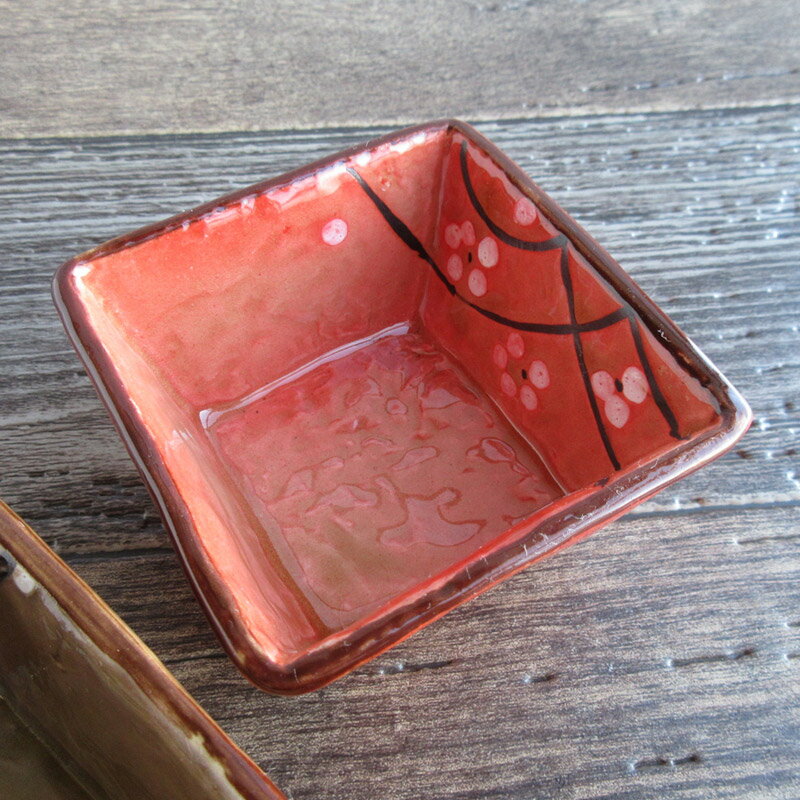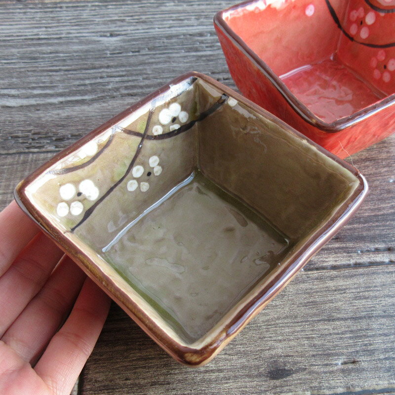 【アウトレット】茶線 梅柄 正角小鉢 (2色選択)※貫入あり / 和食器 小鉢 小付 四角 各鉢 ボウル 梅の花 花柄 和風 中国製