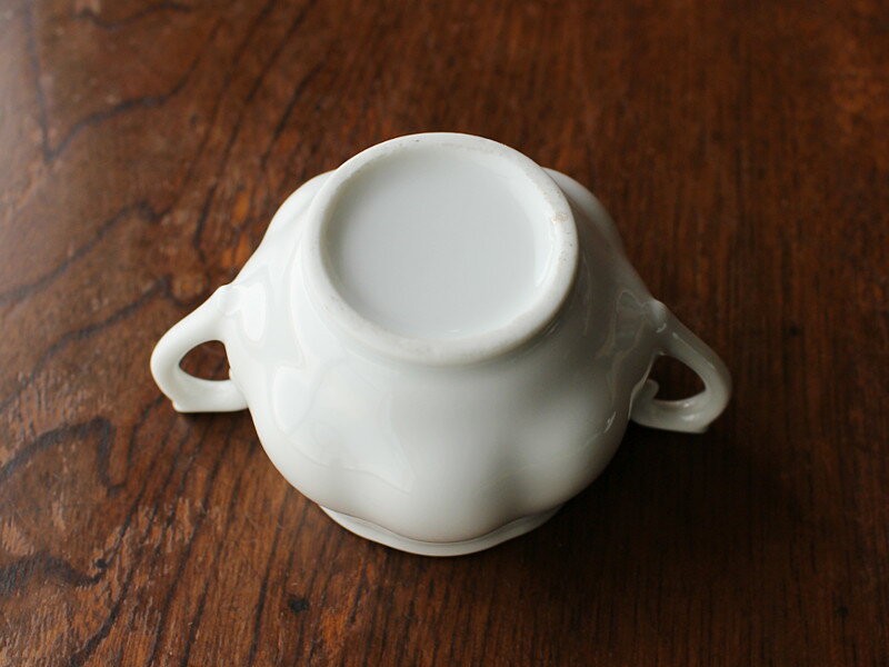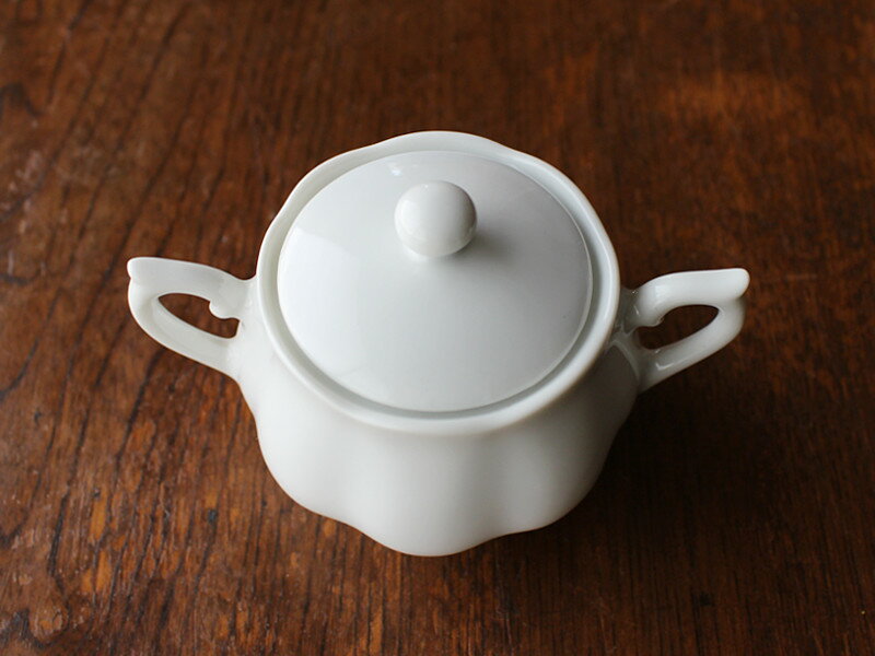 【アウトレット】ホワイト フリル両手付 シュガーポット・ミニ / 白い陶器 白無地 ミニポット 調味料ポット 花型 砂糖入れ 卓上小物 カフェ 小さいサイズ