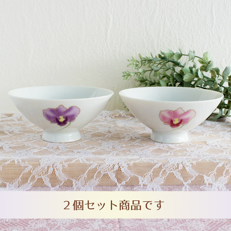 【アウトレット】カトレア ご飯茶碗 2色セット / 食器 器 茶碗 茶わん 碗 ペア セット 2個 ピンク パープル ワンポイント 中平 金彩 花 花柄 おしゃれ かわいい アウトレット 安い 日本製 美濃焼