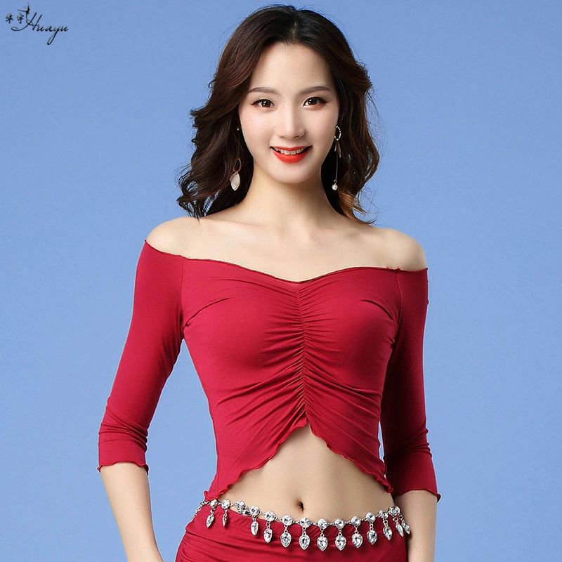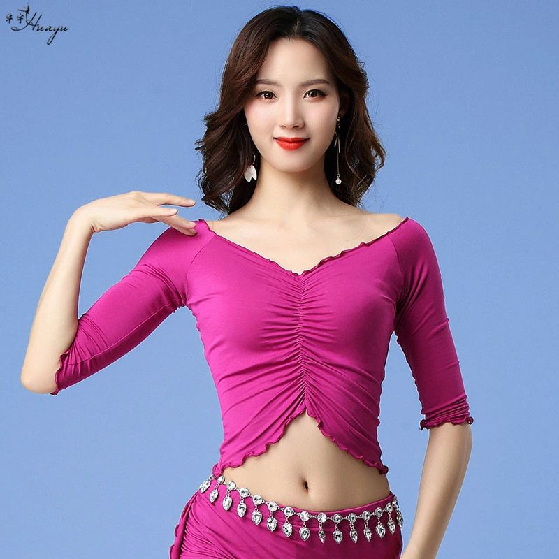 ベリーダンスTシャツ ヨガトップス レディースフィットネスウェア 細見え へそ出し モダール生地 五分袖 ストレッチ ダンスウェア レッスン着 練習着 ヨガ服 リラックスヨガ お家ヨガ ラテンダンス/モダンダンス/新体操/ヨガ/バレエ イエロー ワインレッド ブラック ローズ